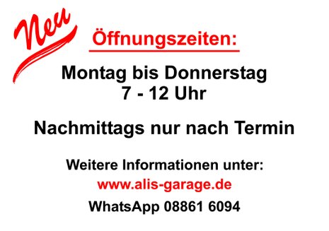 Wenn Sie jetzt Fragen haben, schreiben Sie mir eine Mail an info(at)alis-garage.de oder eine Nachricht per Whatsapp .